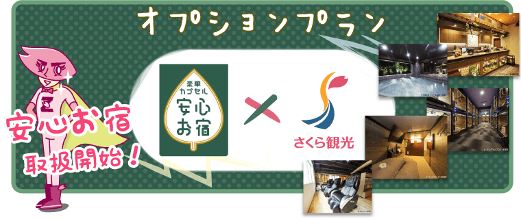 - ご利用の際は受付時に、お名前と予約画面を「安心お宿」の受付へご提示ください。